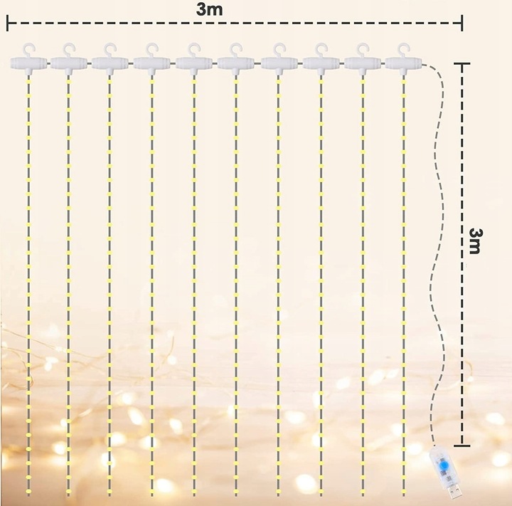 KURTYNA ŚWIETLNA ŚWIĄTECZNA DO OKNA LAMPKI LED 3×3